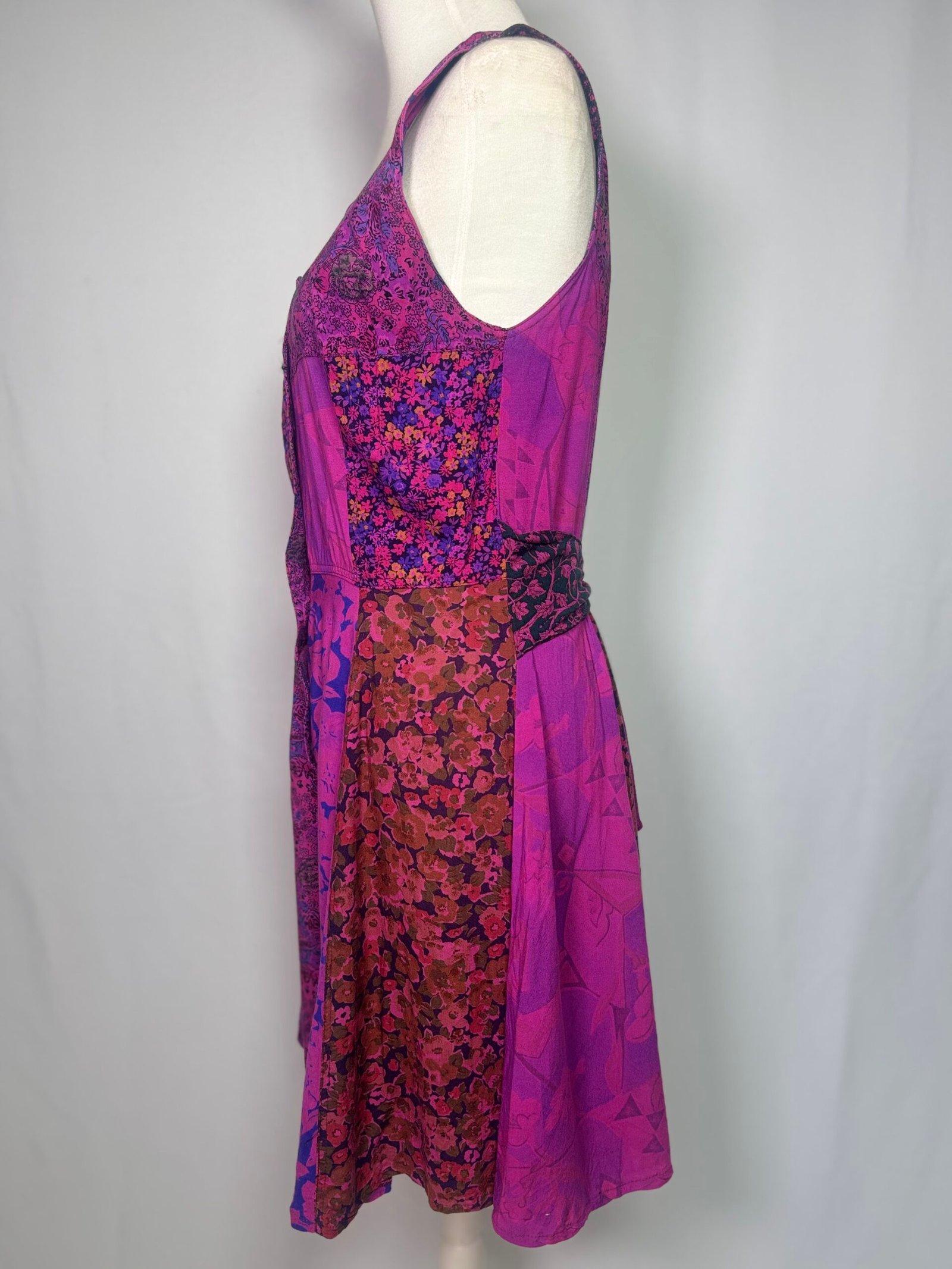 Vibrant floral romper in shades of pink, perfect for sunny days and casual outings.