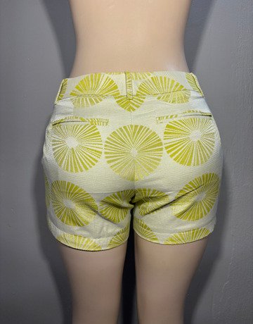 Banana Republic shorts. Yellow and white colouring. Patterned. Closes with a zipper and clasp on the front of the shorts. 61% Cotton fabric.