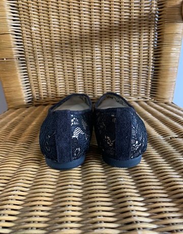 Barneys pumps. Black colouring. Has lace detailing. Has a pointed, closed toe. Good condition.