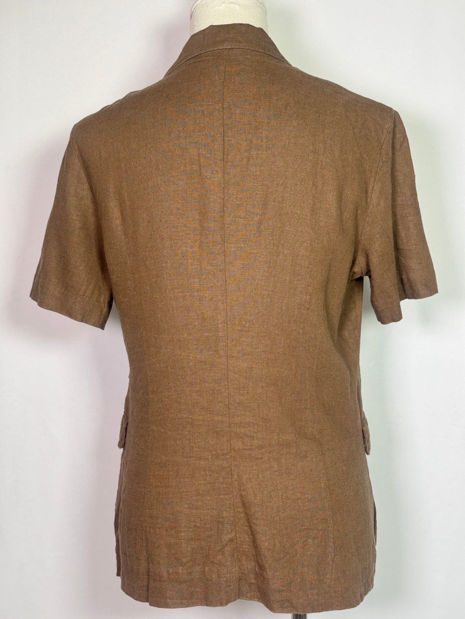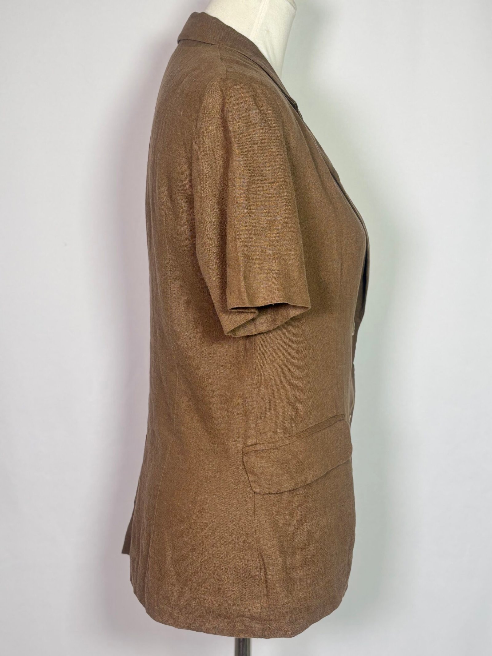 Stylish short-sleeve blazer in a chic brown hue, perfect for both casual and professional settings.