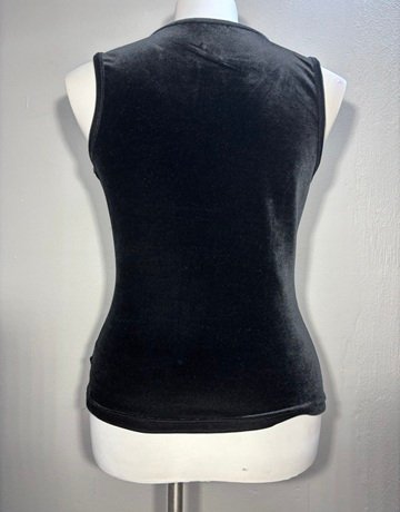 Velvet top. Black colouring. Sleeveless. No brand name. Good condition.
