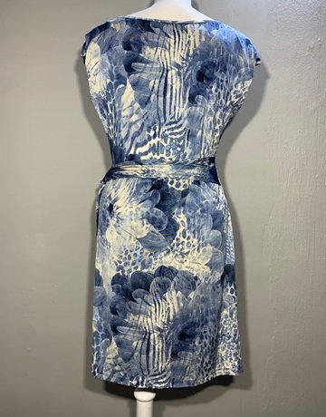 Blue and white dress. Patterned. Good condition. No brand name. No fabric label.