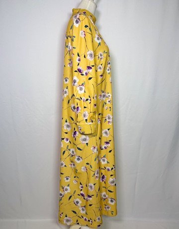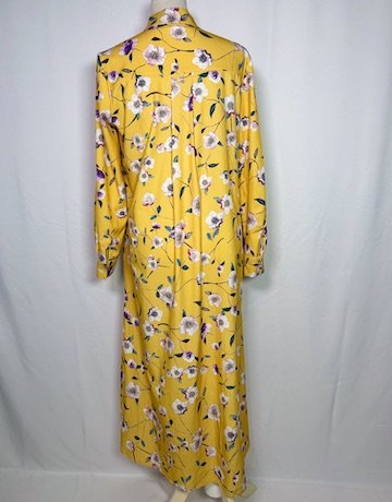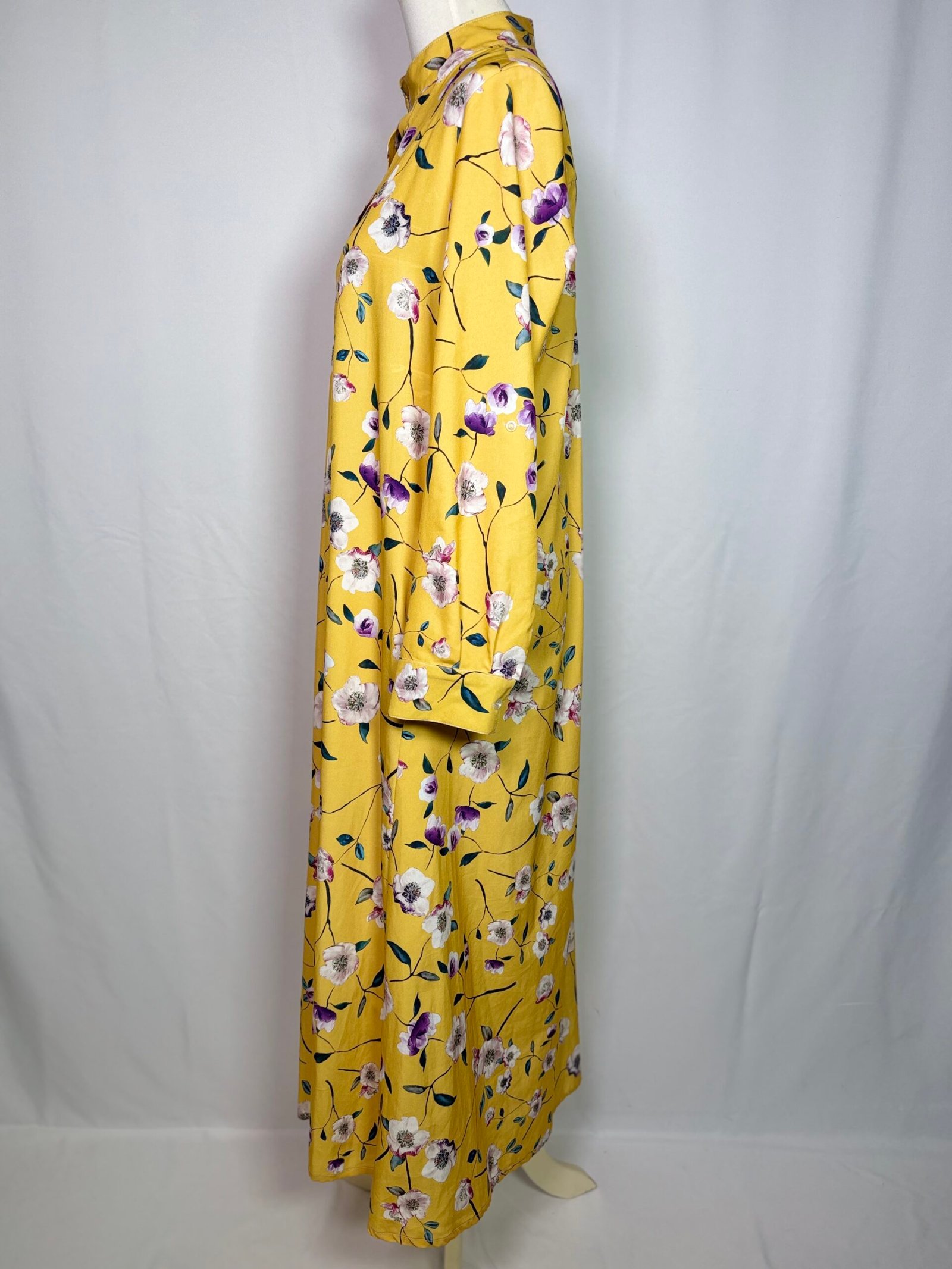 Stunning floral maxi dress with a vibrant yellow background, perfect for summer events or casual outings.