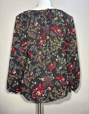 Desray top. Black, red, green, white and yellow colouring. Patterned. Good condition.