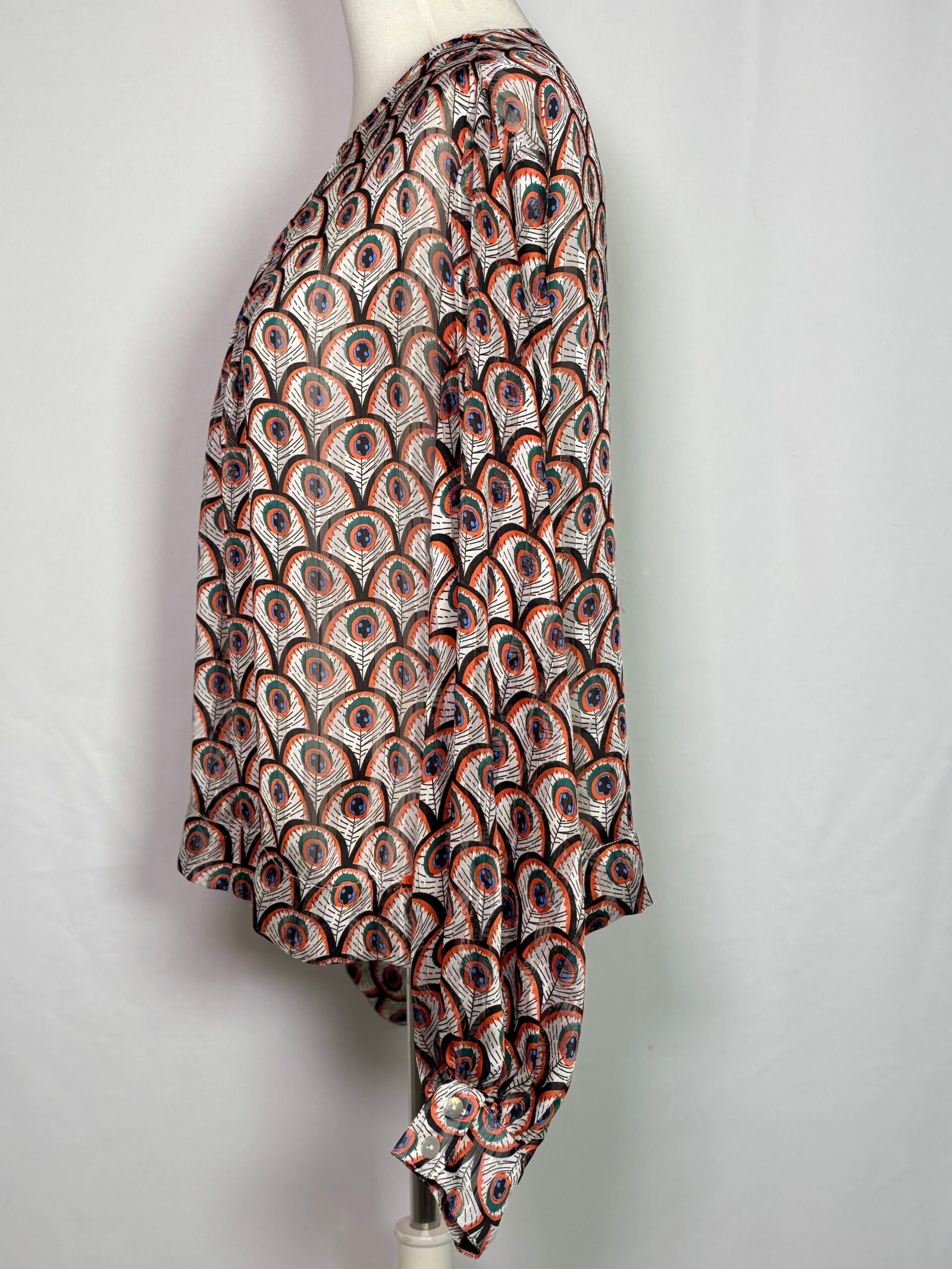 Stylish blouse featuring a vibrant pattern, perfect for dressing up or down for any occasion.
