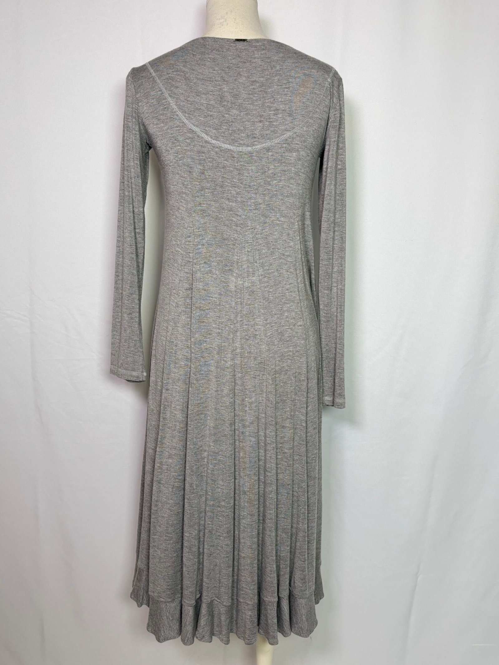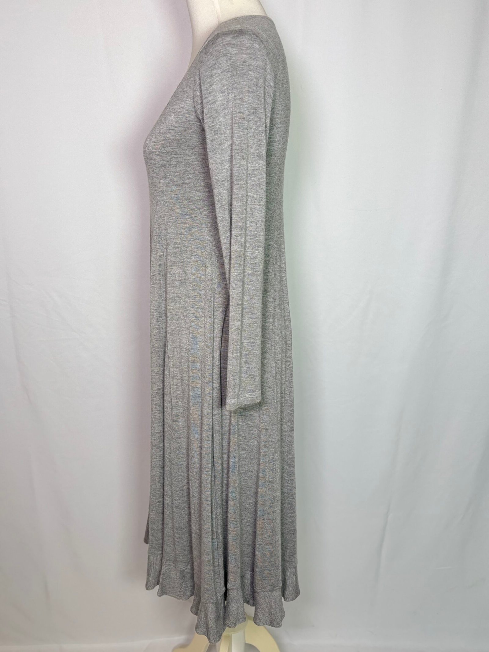 Comfortable long sleeve maxi dress in a soft grey fabric, perfect for lounging or casual outings.