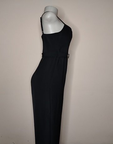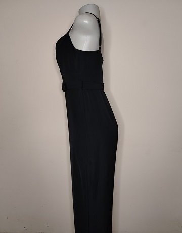 Black Jumpsuit from Forever New. Size – UK10. Fitted waist with Belt. Invisible zipper centre. Adjustable spaghetti straps. Wide legged. Stunning garment in excellent condition.