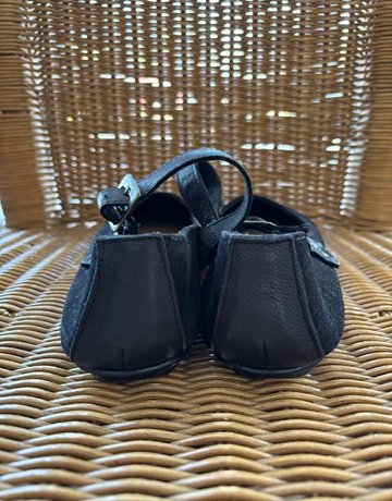 Froggie pumps. Black colouring. Has adjustable straps. Has a closed, rounded toe. Good condition.