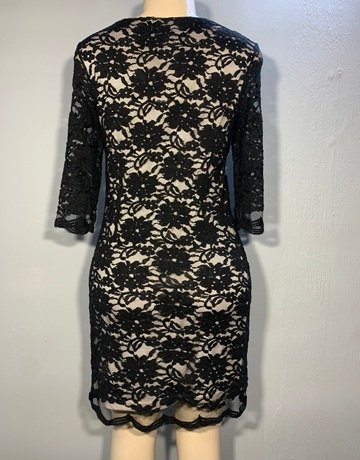 G Couture dress. Black colouring. Lace. 65% Cotton fabric. Has long sleeves. Good condition.