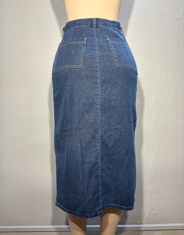 Gloria Van Derbilt skirt. Blue colouring. Closes with a zipper along the front of the skirt. Has pockets on the front and back of the skirt. 100% Cotton fabric. Good condition.
