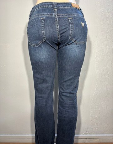 Guess jeans. Blue colouring. Closes with a zipper and button on the front of the jeans. Has pockets on the front and back of the jeans. 99% Cotton fabric. Good condition.