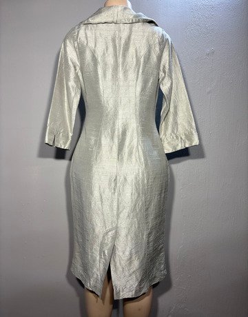 Habits Collection dress. Silver colouring. Closes with a zipper along the side of the dress. Has long sleeves. Good condition.
