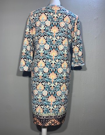 Iconic dress. Blue, orange, green and black colouring. Patterned. V-Neck. Good condition.