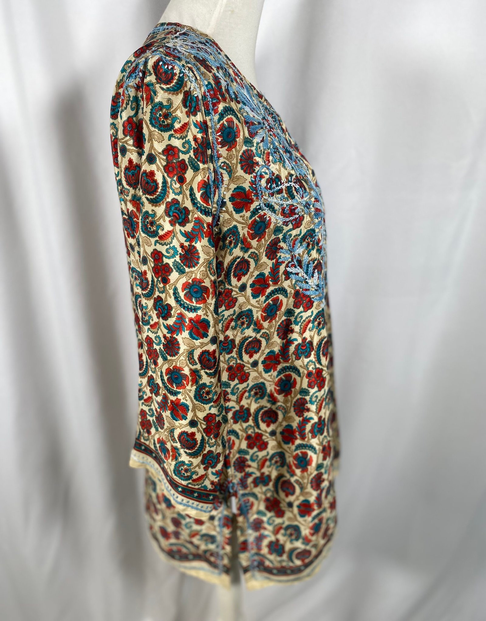 India Ink (100% Silk Blouse with hand stitched embroidery detail) – Size 14