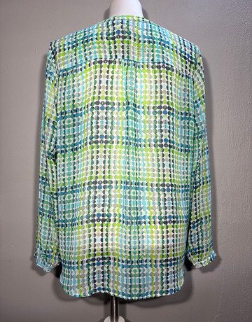 Liz Claiborne Green And Blue Patterned Mesh Top- Size Large