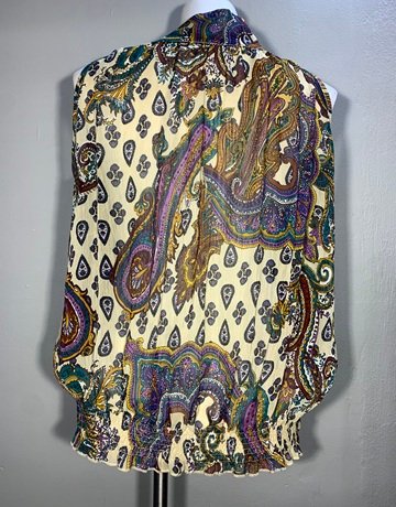 Love Jeans top. Purple, yellow, green, blue and cream colouring. Patterned. Mesh fabric. Good condition.