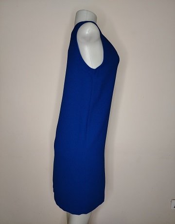Royal Blue Shift Dress from Mango Suit. Size – Small. Sleeveless and Fully lined. V-shaped neckline. Knee-length. Textured fabric. Interesting keyhole detail at the back. tunning formal dress in excellent condition.