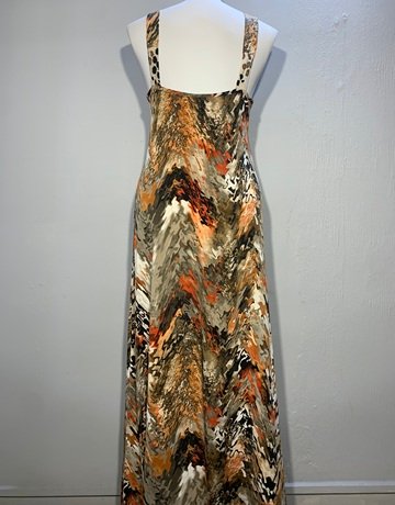 Marianna dress. Brown, orange, white, black and grey colouring. Patterned. Good condition.