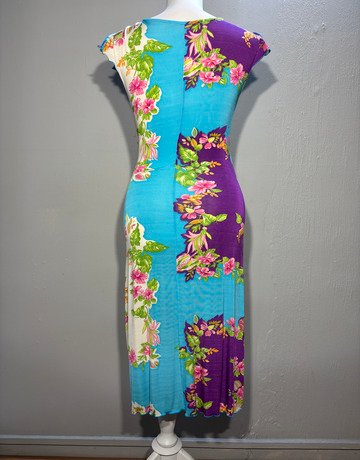 Marion And Lindie dress. Blue, purple, green, white and pink colouring. Patterned. V-Neck. Light weight. Good condition.