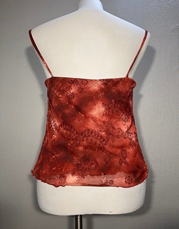 Monet top. Maroon colouring. Patterned. Has spaghetti straps. Good condition.