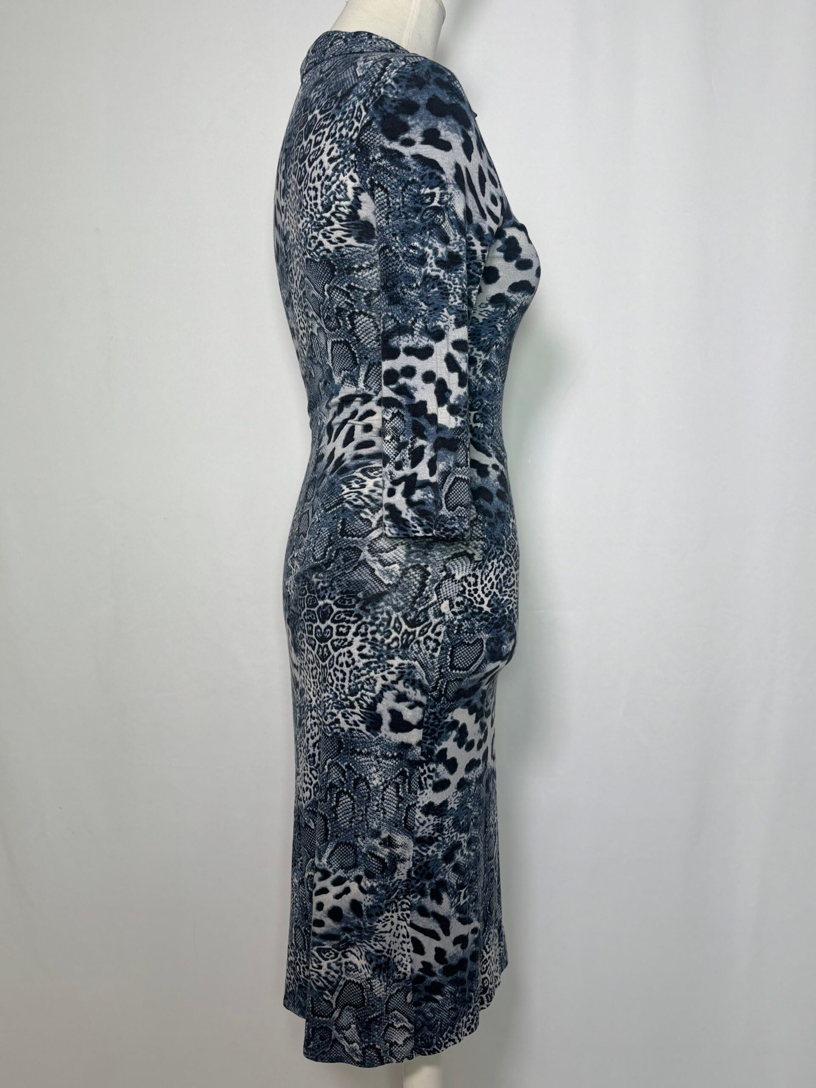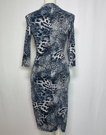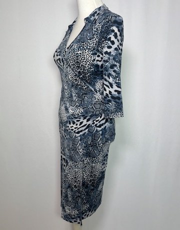 Stylish wrap dress featuring a unique animal print, perfect for both casual and formal occasions.