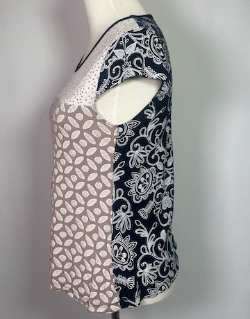 Stylish multicoloured top featuring a mix of patterns, perfect for adding a fun touch to your wardrobe.