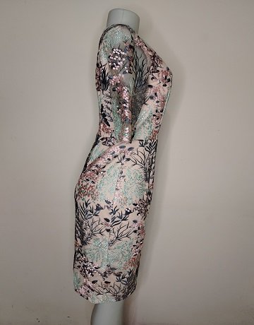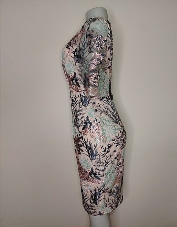Embroidered Lace from Phase Eight. Size – UK10. Short sleeved. Round neckline. Zipper centre back. Fitted. Fully lined. Botanical embroidery in shades of Grey, Jade and Pink. Knee length. Gorgeous dress in excellent condition.