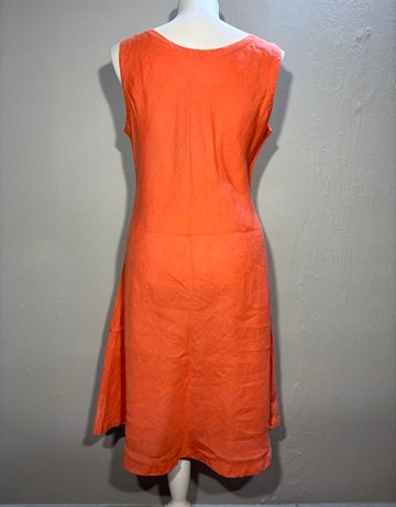 Puro Lino dress. Orange colouring. Sleeveless. Scoop neck. Has two pockets on the front of the dress. Good condition.