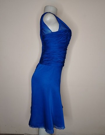Electric Blue Coctail Dress from Rosenwerth. Size – Small. Ruched Bust and Waist. Fully lined. Swingy skirt. Zipper centre back. Stunning Occassion Dress in great condition.