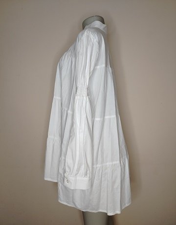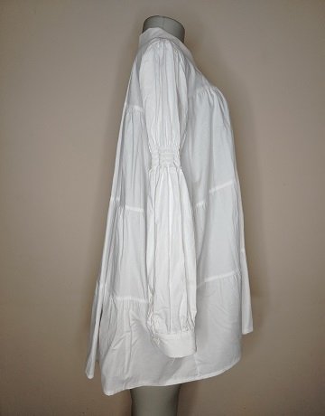 White Shirt/Tunic from Ruald Rheeder. Size X-Large. Tiered. Collared. Button-through. Long sleeved. Cuffed sleeves with elastic detail. Longer length. 100% Cotton. As good as new.
