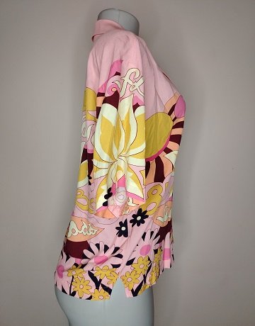 Pink & Yellow Camp Placed Print Shirt from Scotch & Soda. Size EU34/Small. Vibrant print. Eye-catching stamp print. Viscose fabric. Relaxed fit. Stunning button-down in excellent condition.