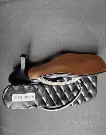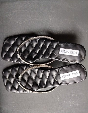 Black Steve Madden Davia embellished thong-strap sandals. Size – UK 7. Square-toe slide sandals featuring a quilted footbed snd rhine-stone studded straps. sandals are in good condition.