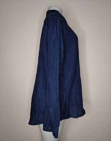 Navy Button-through Shirt from Trenery. Size XX-Large. French Linen fabric. Long sleeved. Collared. Loose fitting. Classic Shirt in great condition.