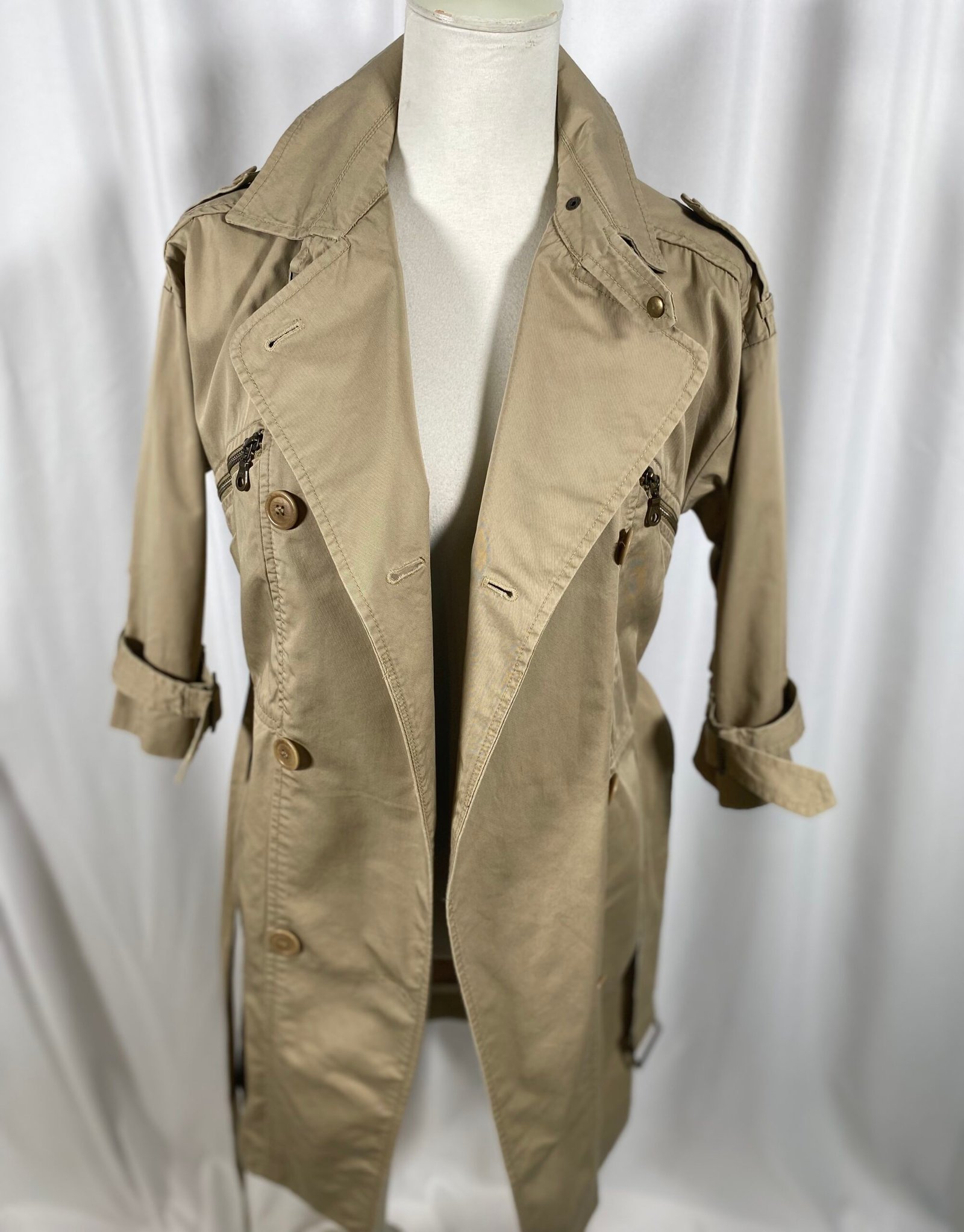 Trenery Khaki Trench Coat (with zip & buckle detail) – Size XS
