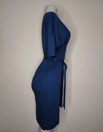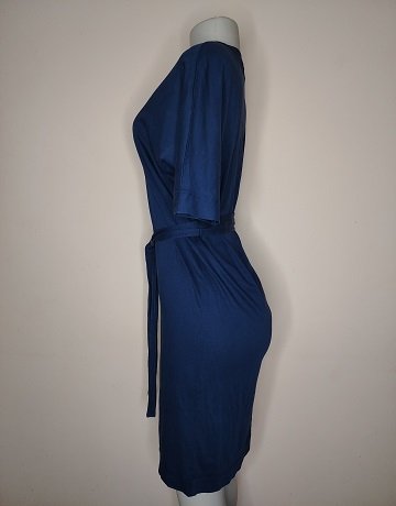 Navy Blue Stretch Cotton Dress from Trenery. Size – XX-Small. Cut-on short sleeves. V-shaped neckline. Fabric belt. Silky, stretch cotton fabric. Eay to wear day dress in great condition.