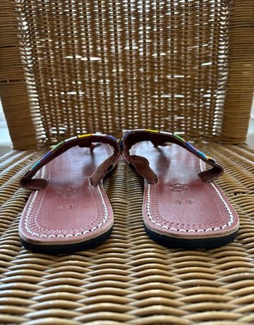 Vena Pella sandals. Brown, red, blue, green and white colouring. Has beaded detailing. Good condition.