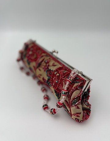 Beautifully crafted clutch bag featuring intricate embroidery and a stylish beaded strap, perfect for special occasions.