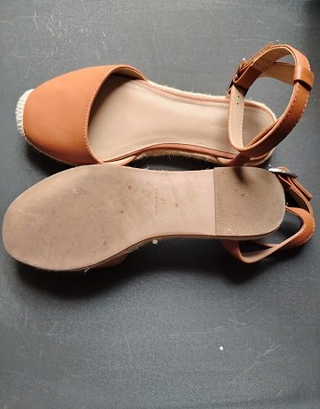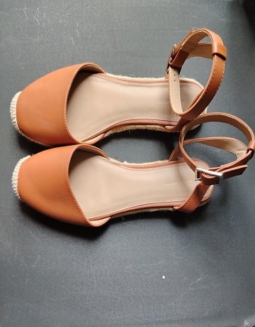 Tan Strappy Espadrille wedge sandals in Tan. Size EU37/UK4. Ankle strap. Closed tound toe and open midsection. Woven Jute fiber sole. Leather upper. Shoes are in excelent condition.